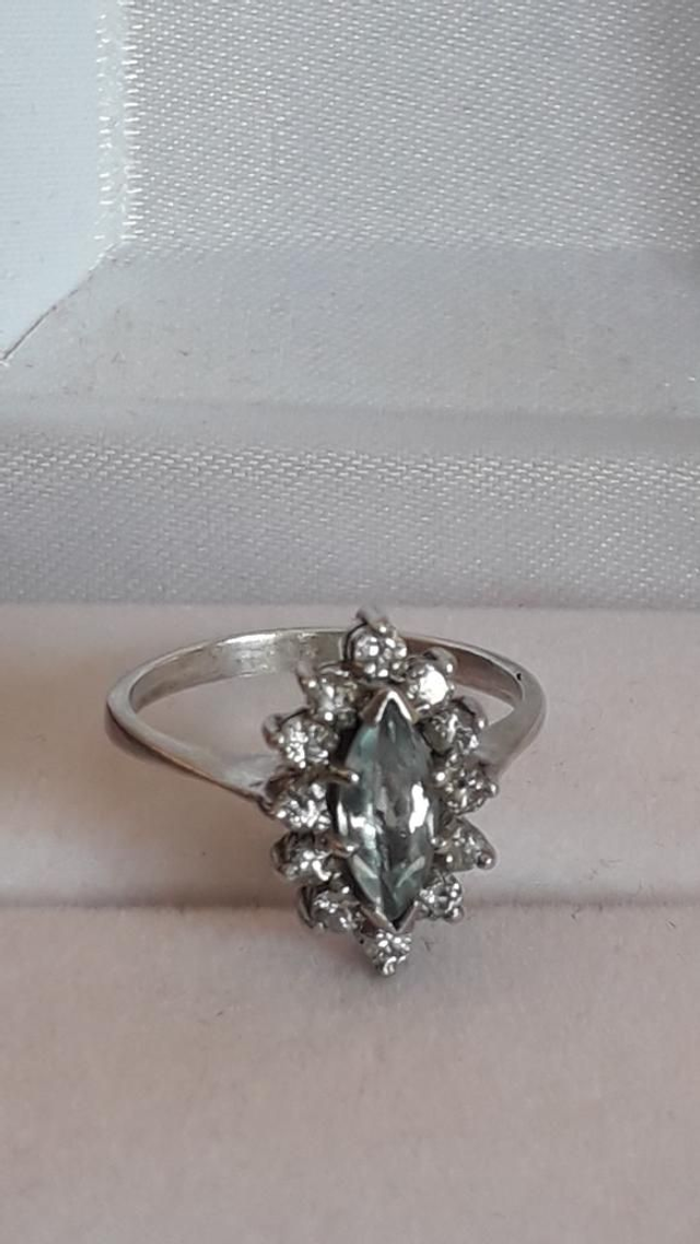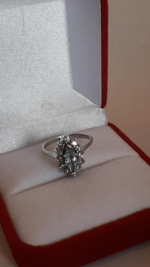 Bague aigue marine, zirconiums, argent 925