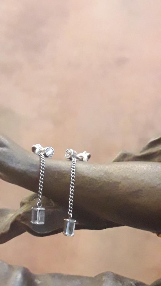 Boucles d'oreilles, aigue marine, howlite, quartz rose, jaspe, charoite, argent.