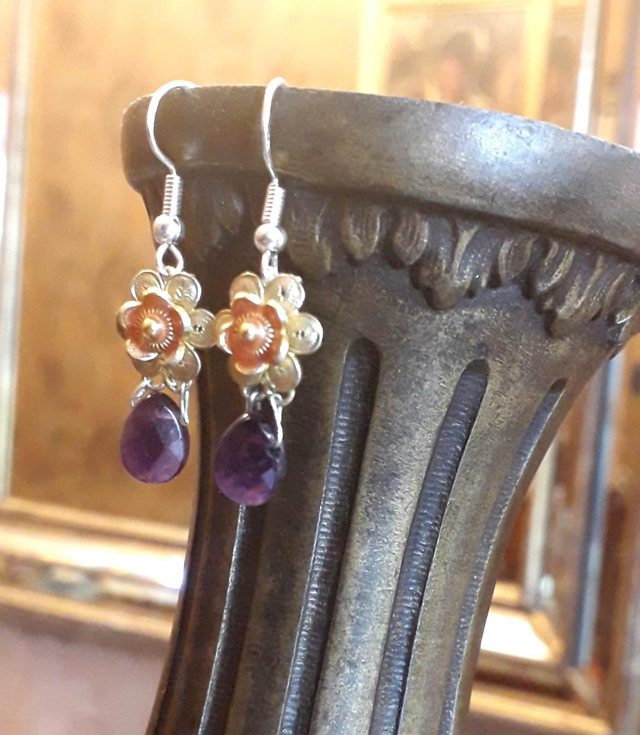 Boucles d'oreilles améthyste, argent, vermeil 925/1000, émail.