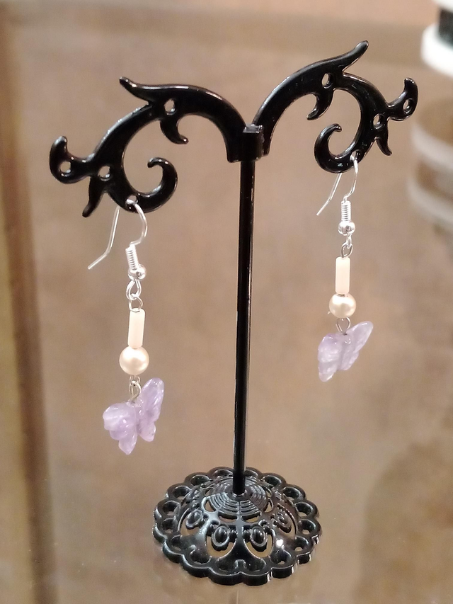 Boucles d'oreilles améthyste, perle de culture, corail, argent 925/100.