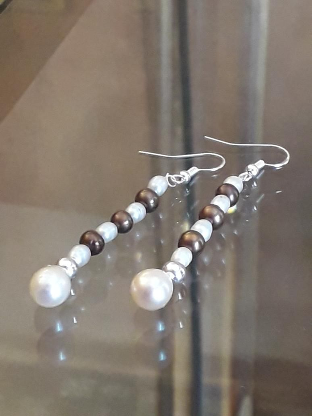 Boucles d'oreilles perles de culture blanches et chocolat, argent 925/1000.