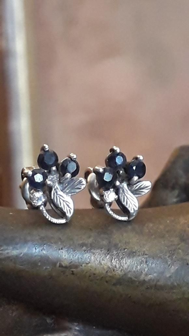 Boucles d'oreilles saphirs, argent 925.