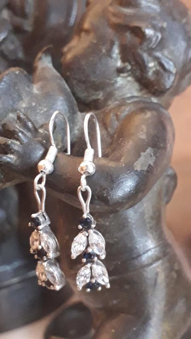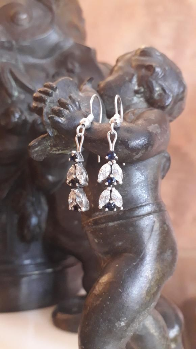 Boucles d'oreilles saphir, zirconium, argent 925.