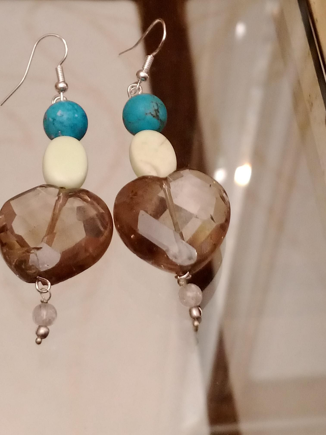 Boucles d'oreilles, turquoise, magnétite, quartz fumé, cristal de roche, argent 925/1000