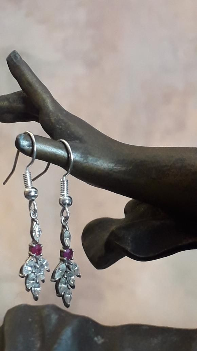 Boucles d'oreilles, zirconiums, rubis, argent 925.