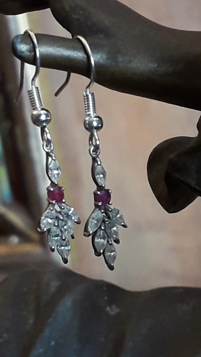 Boucles d'oreilles zirconium, rubis, argent 925