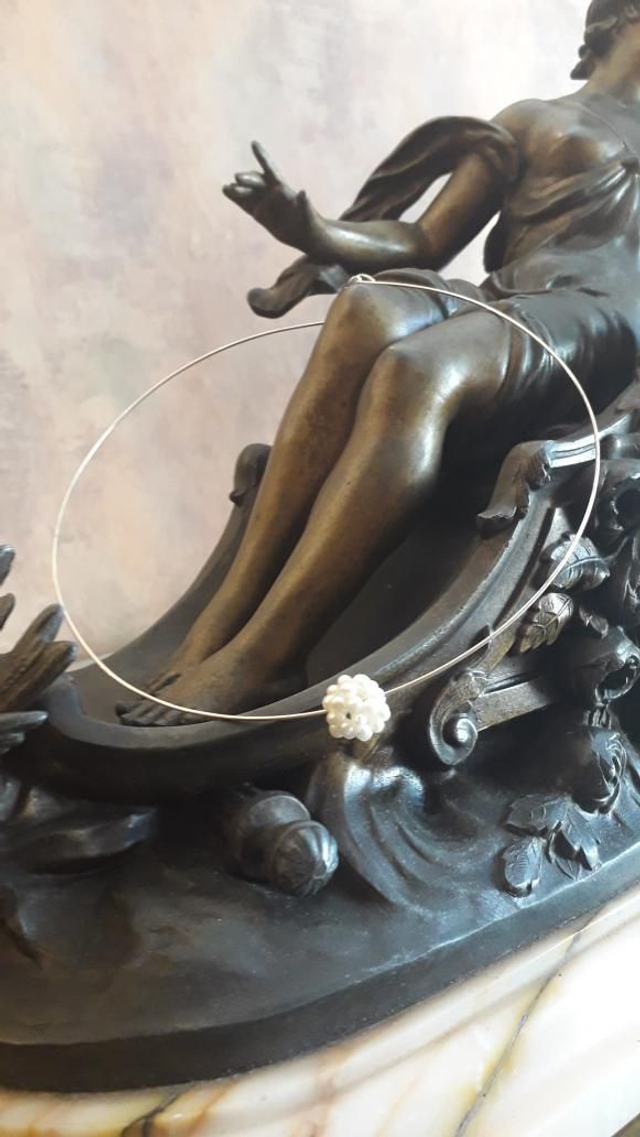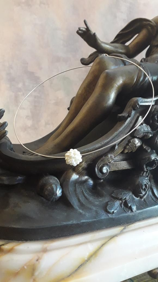Collier rigide perle de culture, argent 925.