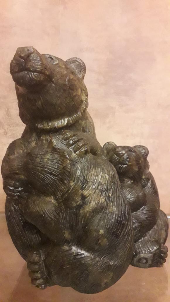 Œuvre d'art en schiste et émeraudes.
