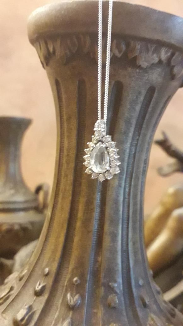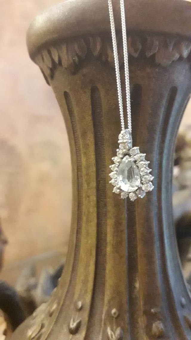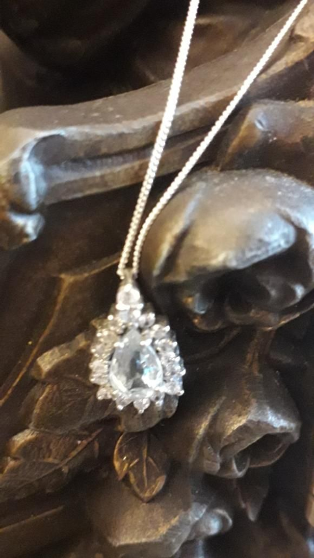 Pendentif aigue marine, zirconiums, argent 925.