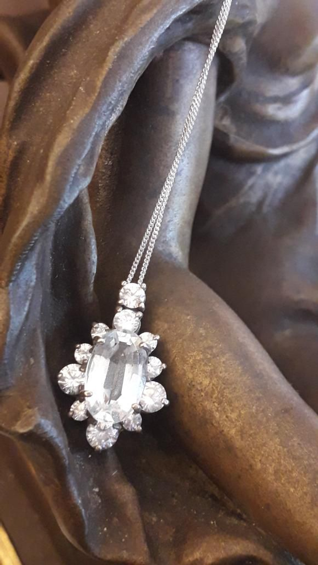 Pendentif aigue marine, zirconiums, argent 925