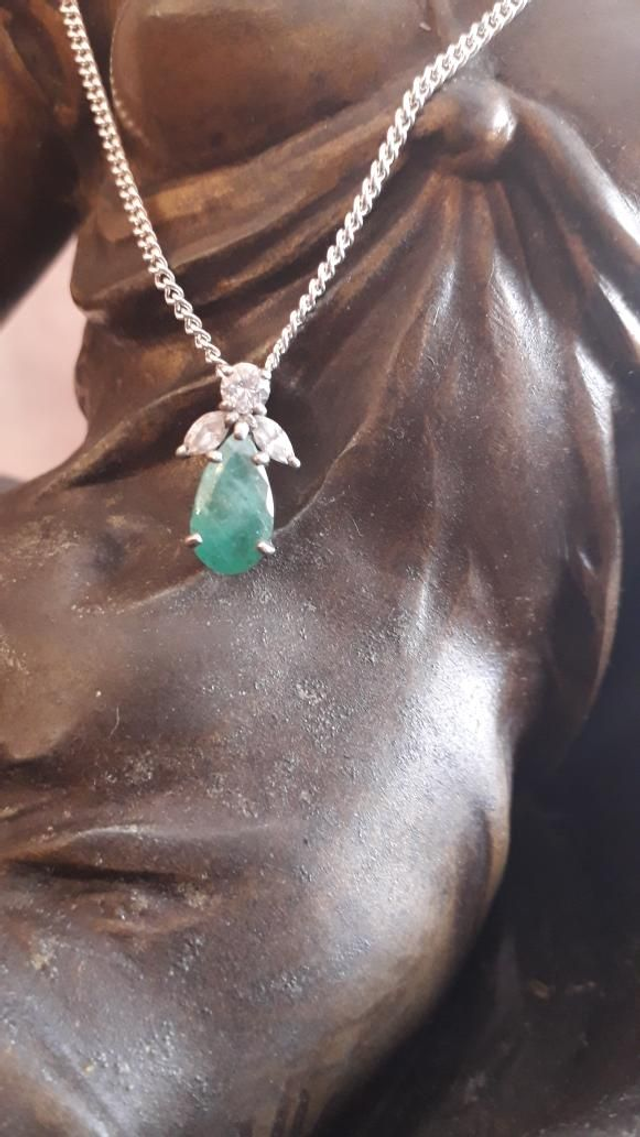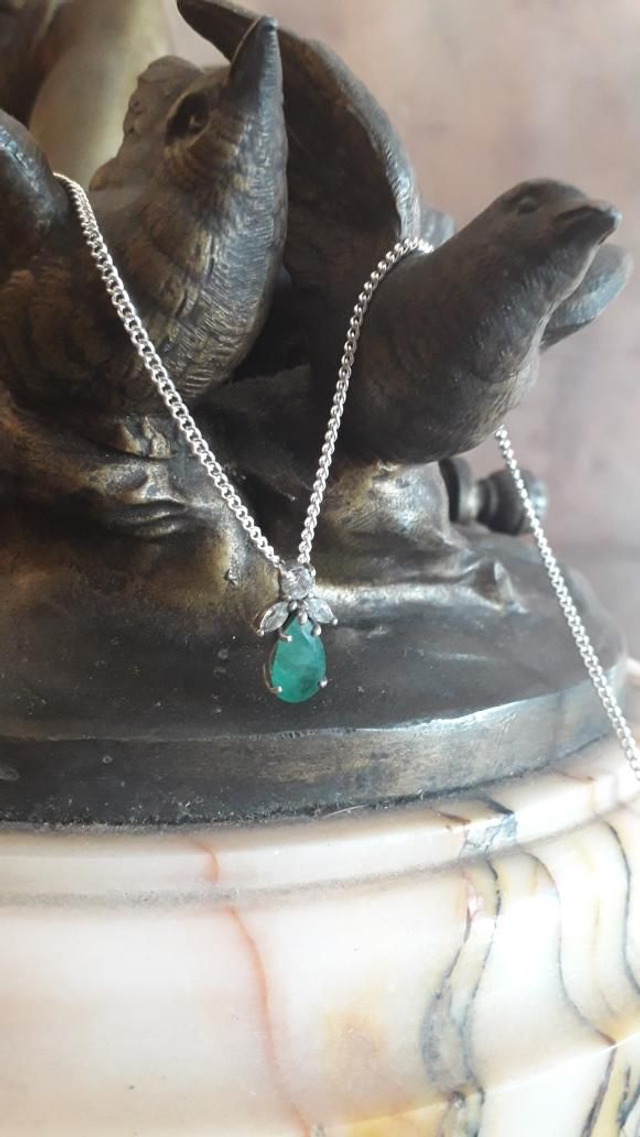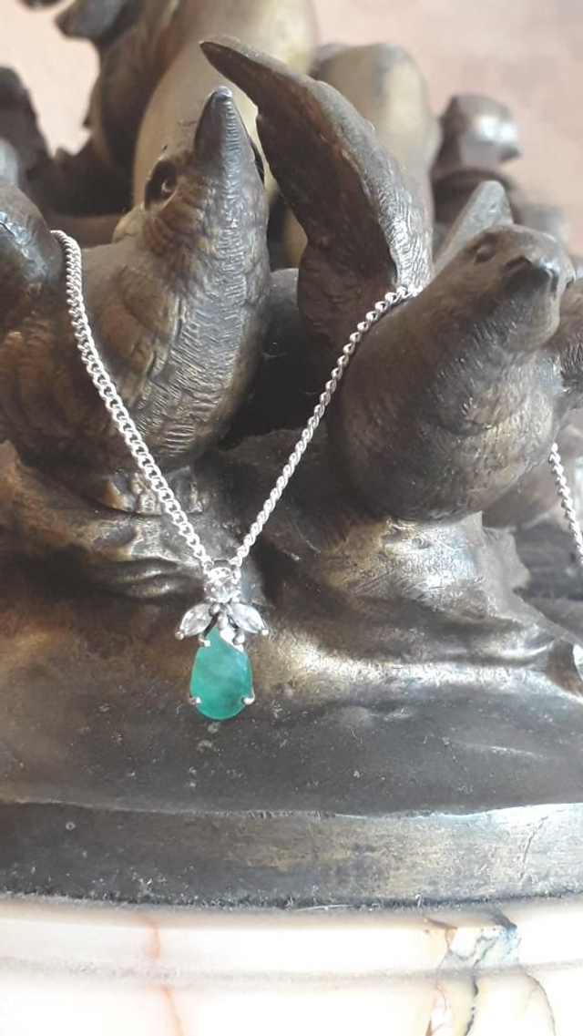 Pendentif émeraude, zirconium, argent 925