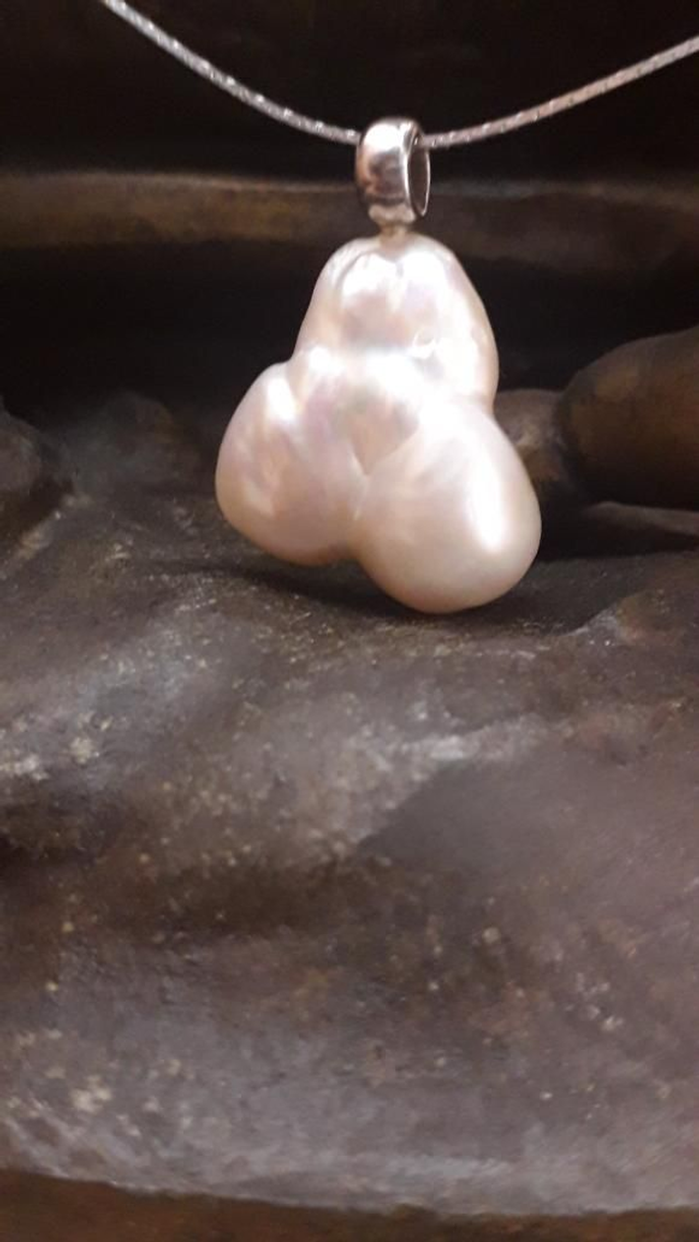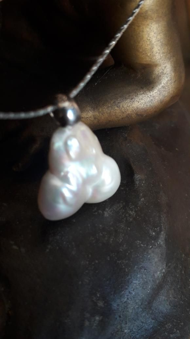 Pendentif perle de culture baroque, argent 925.