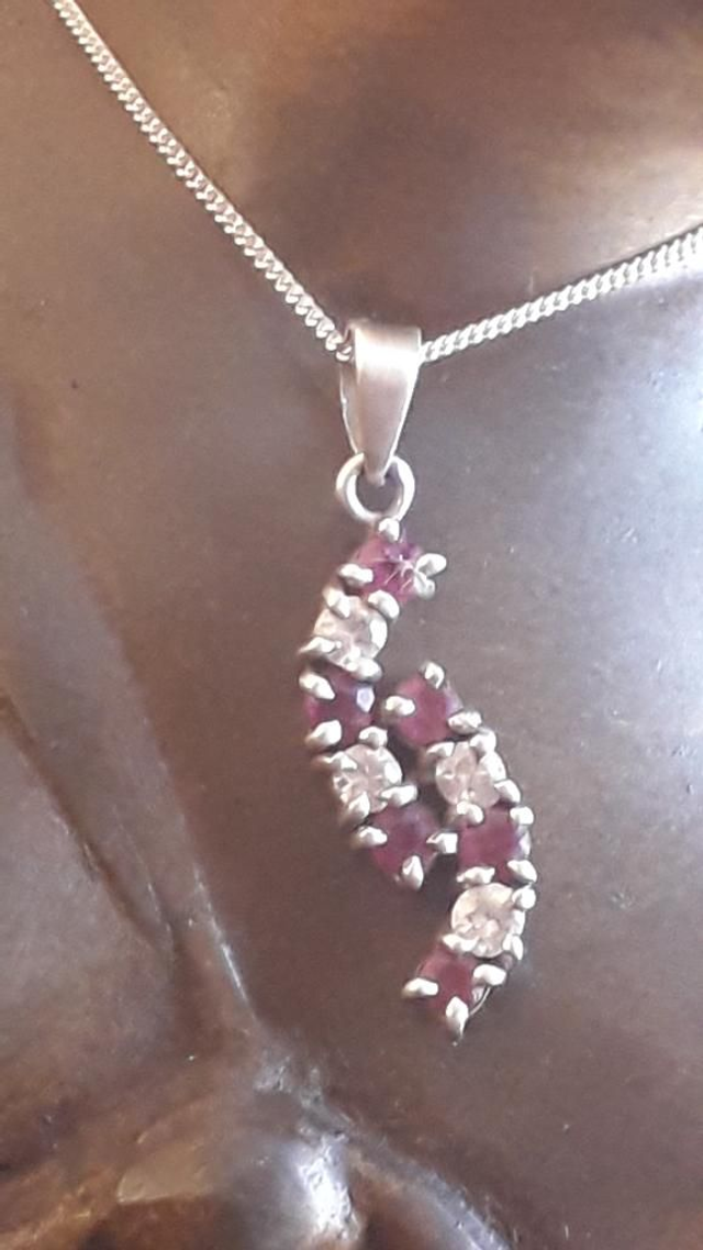Pendentif rubis,zirconium, argent 925