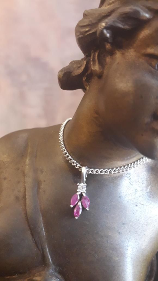 Pendentif rubis, zirconiums, argent 925