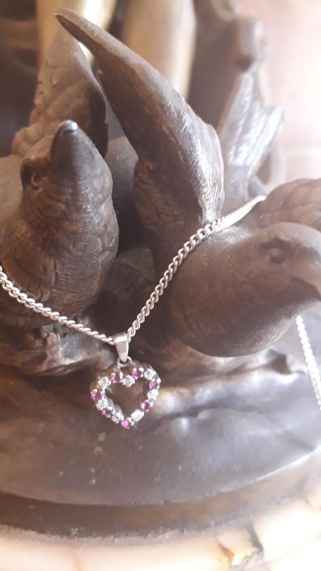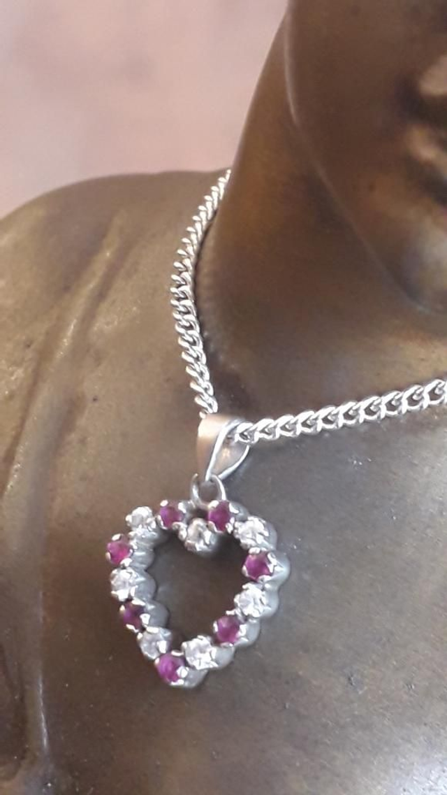 Pendentif rubis, zirconiums, argent 925 .