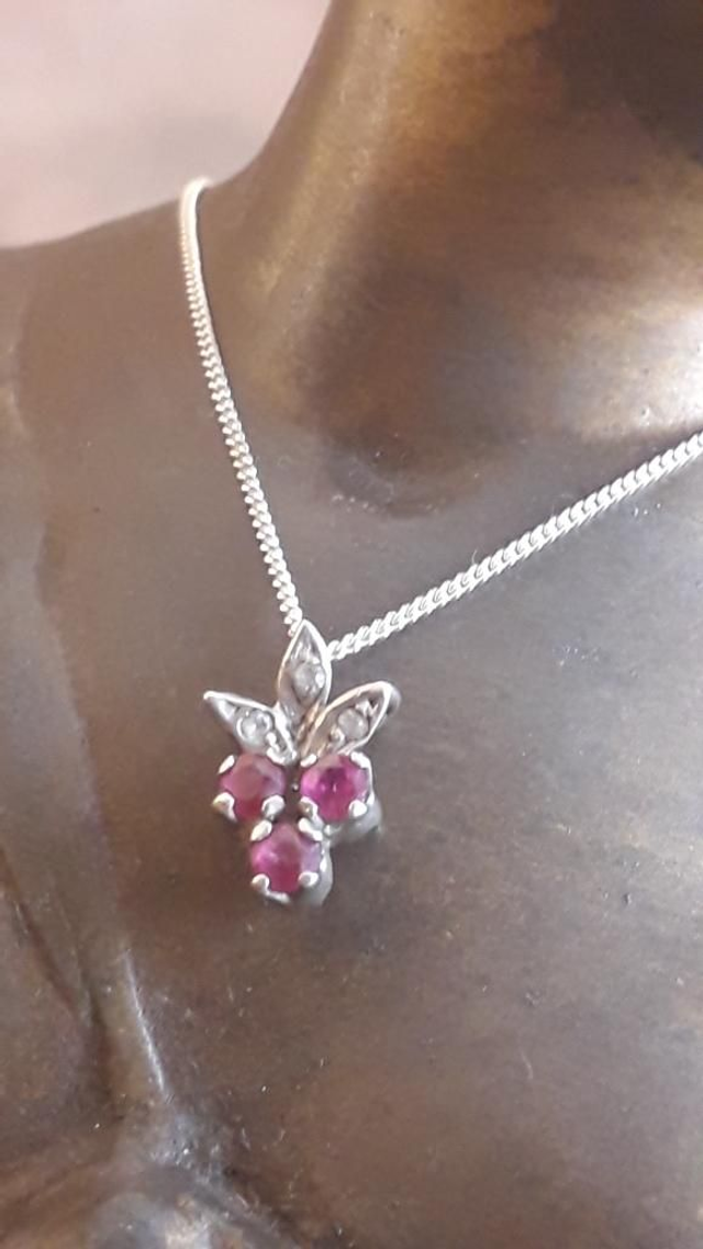 Pendentif rubis, zirconiums, argent 925