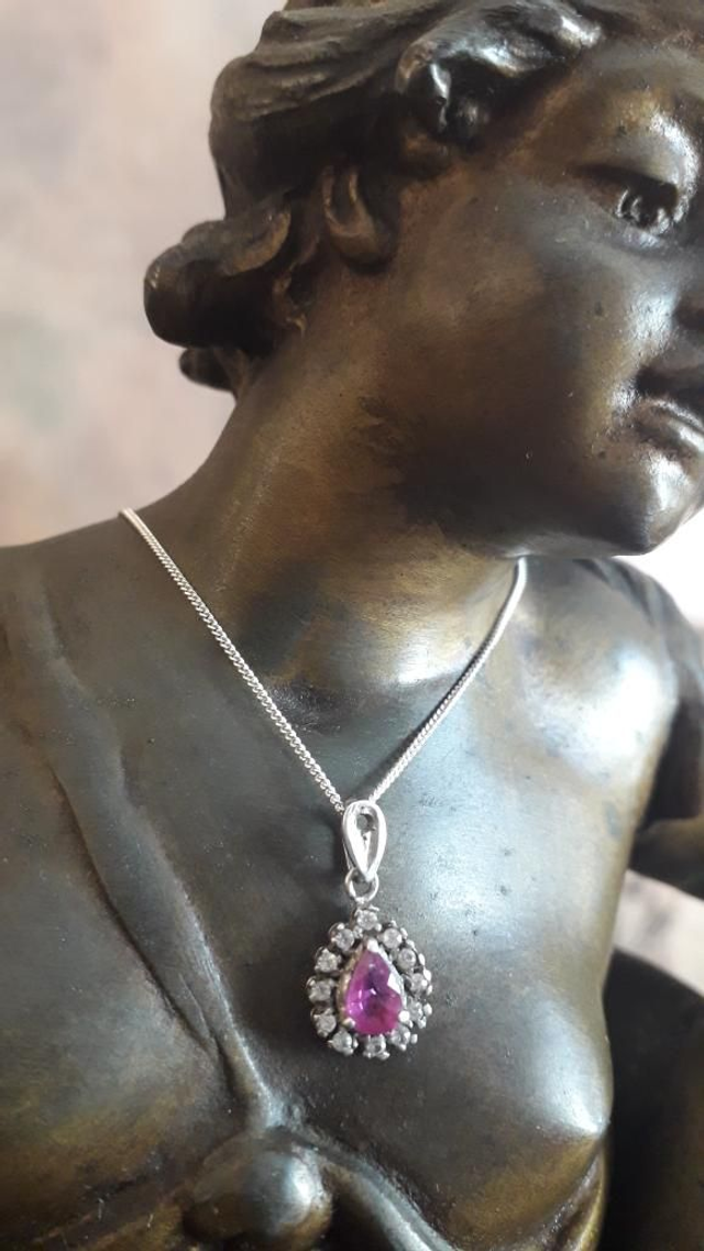 Pendentif rubis, zirconiums, argent 925