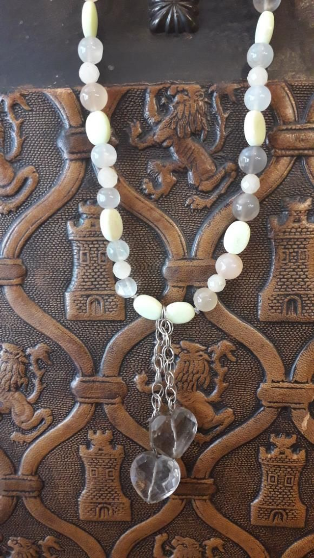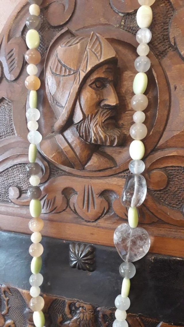 Sautoir pierre de lune, magnétite, quartz fumé, ambre, quartz landes, vermeil.