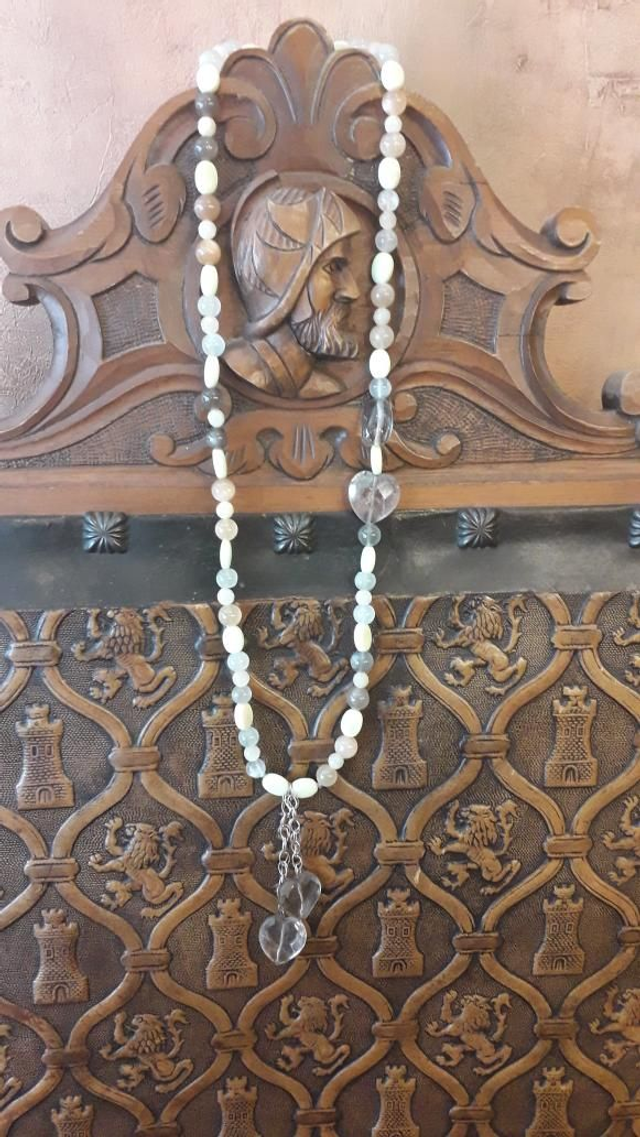 Sautoir pierre de lune, magnétite,quartz landes, quartz fumé, vermeil